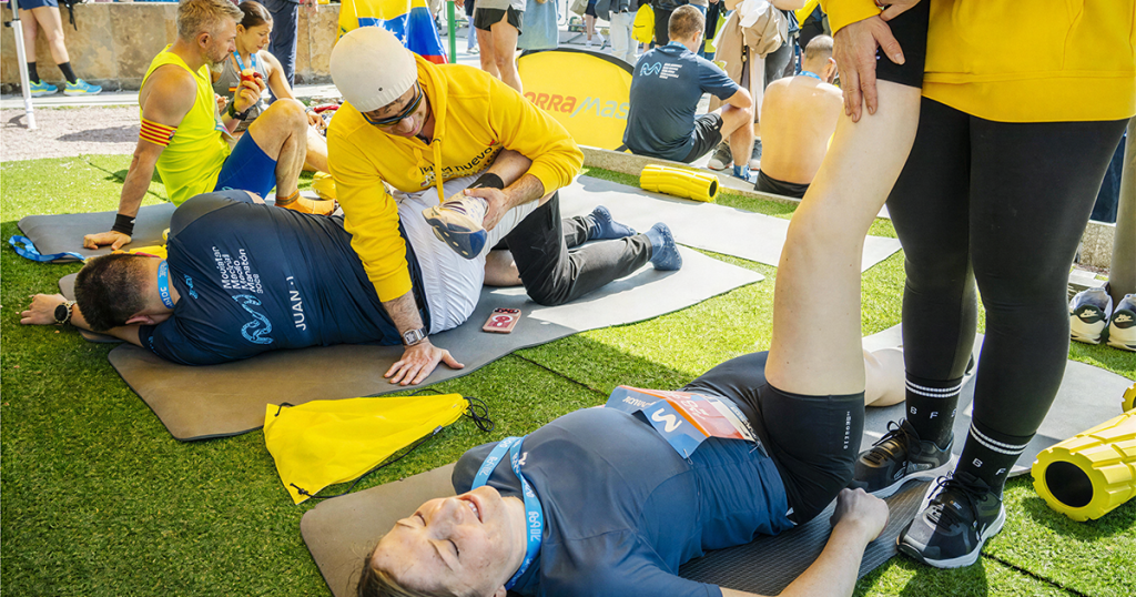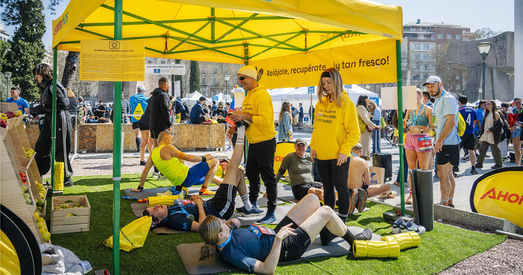 Al cruzar la meta, miles de asistentes a la carrera hicieron parada en nuestro espacio de la Plaza de Colón, donde pudieron realizar estiramientos con monitores especializados y recuperar fuerzas con una selección de fruta fresca con opciones como manzanas, uvas, plátanos y mandarinas. ![]()